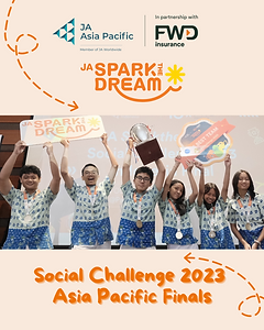 The Social Challenge is a competition in which junior youth were invited to submit their innovative ideas for improving and making an impact on their local communities. Three teams of Junior Achievement students in the Asia Pacific region have been selected as first-, second-, and third-place winners at the regional JA SparktheDream Social Challenge 2023. The winning teams were selected from finalists of national Social Challenges from more than 60 teams that submitted videos in six markets across Asia-Pacific (Hong Kong SAR, Indonesia, the Philippines, Singapore, Thailand and Vietnam).